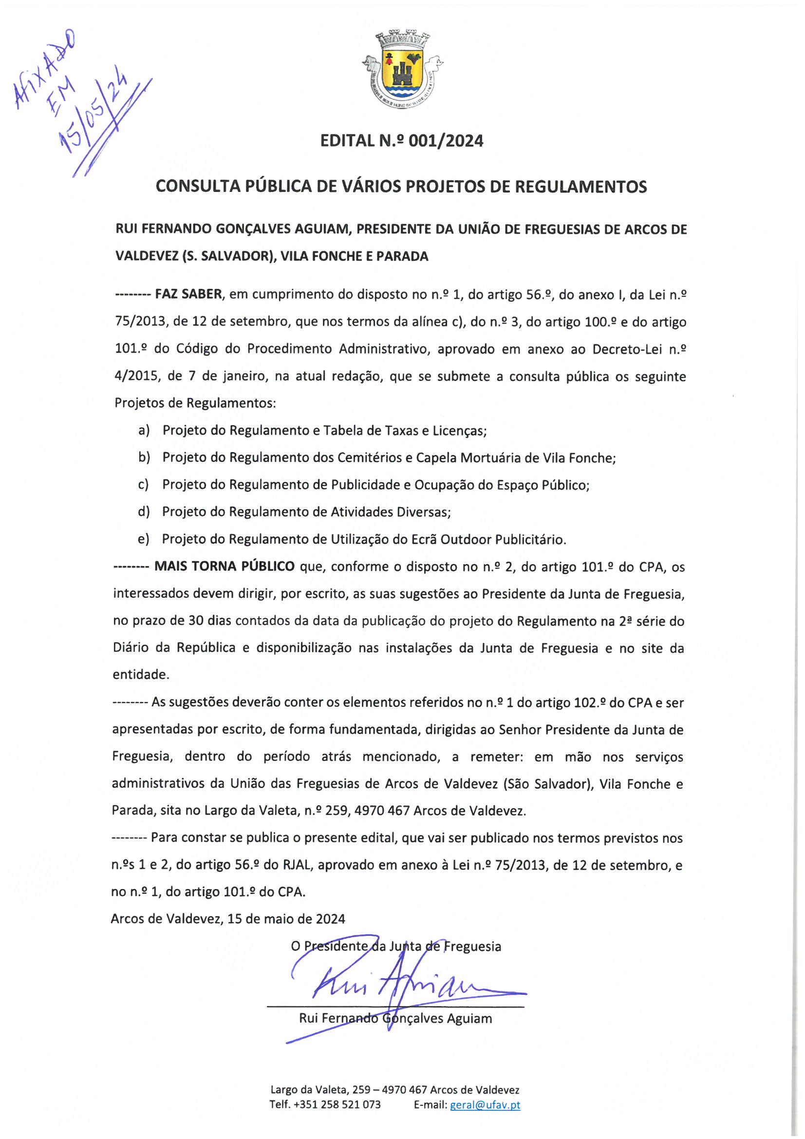 CONSULTA PUBLICA DE VARIOS PROJETOS DE REGULAMENTOS